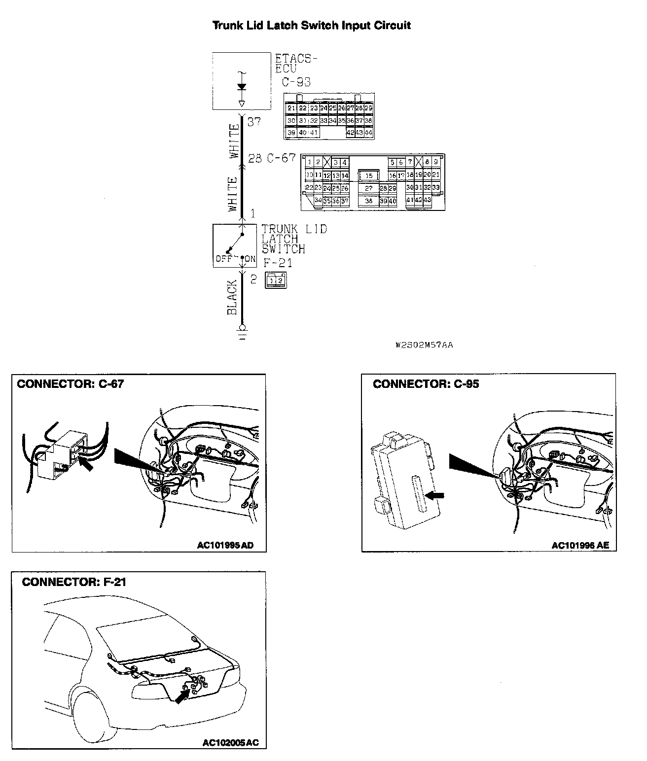 Q: Are trunk lid latch switch connector F-21 and ETACS-ECU connector C-95 in good condition?