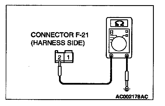STEP 2. Check the trunk lid latch switch ground circuit at trunk lid latch switch connector F-21.
