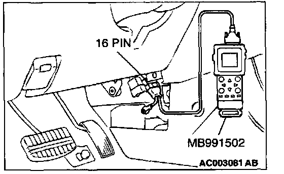 1. Connect scan tool MB991502 to the data link connector.