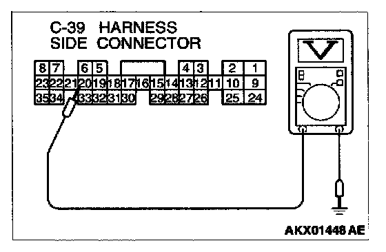 1. Disconnect the connectors C-39 and measure at the harness side.