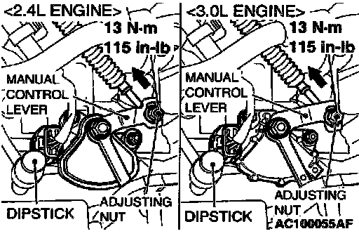 NOTE: The park/neutral position switch body can be aligned by inserting a -mm diameter steel bar into the end hole of the manual control lever and the flange hole of the park/ neutral position switch body.