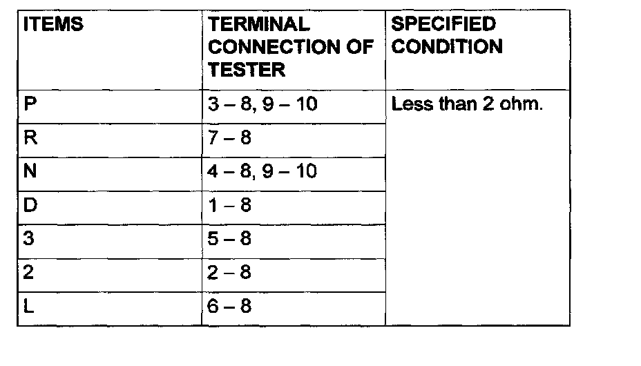 PARK/NEUTRAL POSITION SWITCH CONTINUITY CHECK