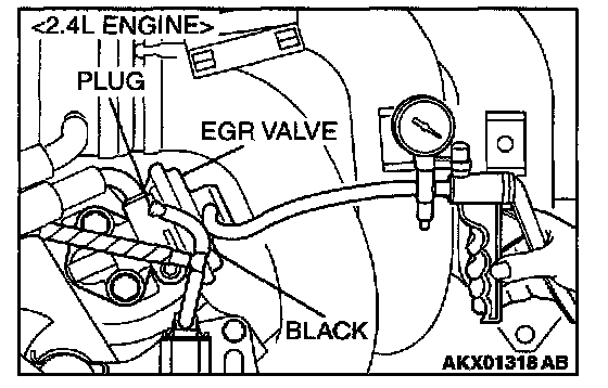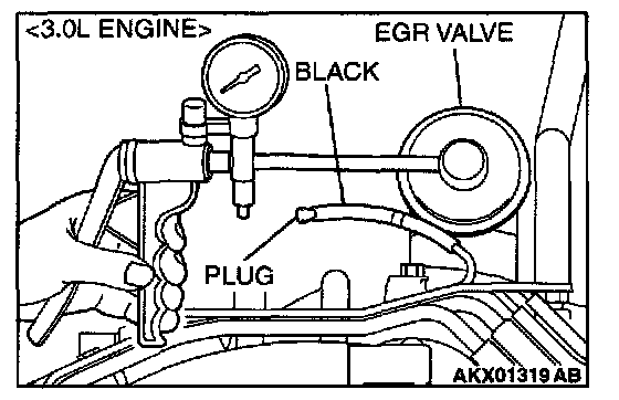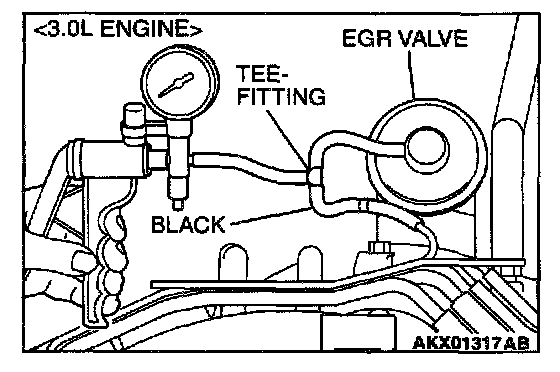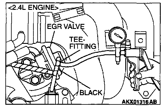 1. Disconnect the vacuum hose (black) from the EGR valve, and then connect a hand vacuum pump via the Tee-fitting.