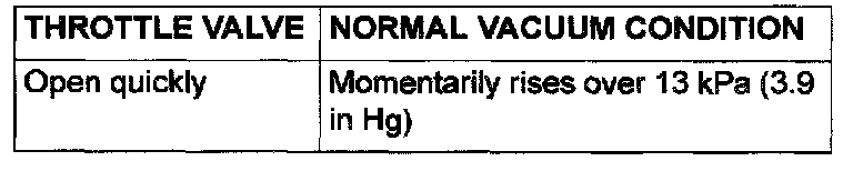 2. Start the engine. Check the vacuum condition when the throttle valve is opened suddenly (revving) during cold and hot engine conditions. If the engine is hot and the vacuum does not rise over 13 kPa (3.9 in Hg), perform the vacuum control valve check and EGR port vacuum check. Then continue to Step 3. If vacuum rises momentarily, proceed to Step 3.