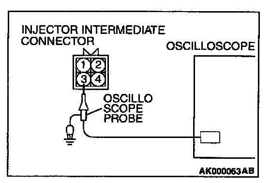 2. Connect the oscilloscope probe to each injector intermediate connector terminal to analyze each cylinder:
