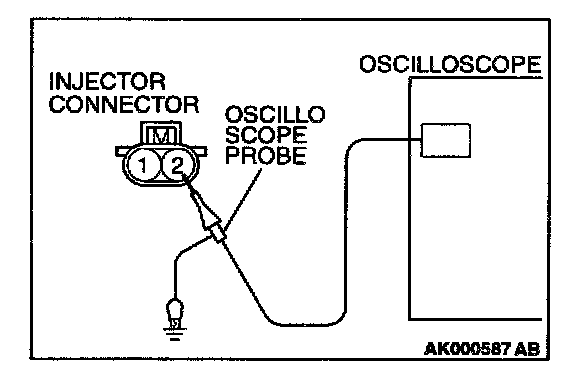 2. Connect the oscilloscope probe to injector connector terminal 2.