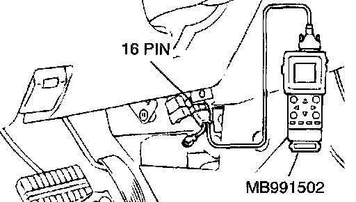 2. Connect scan tool MB991502 to the data link connector.