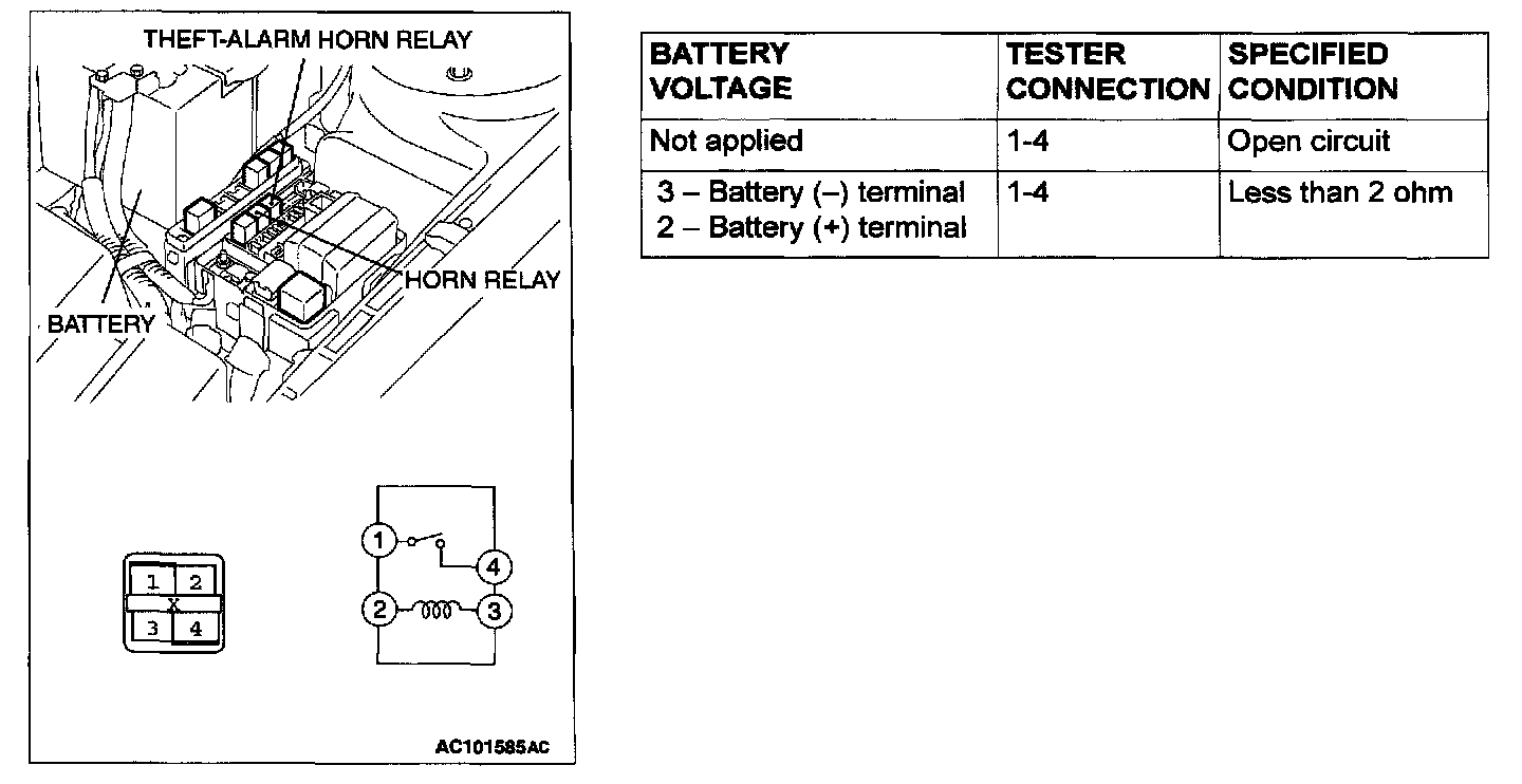 Horn Relay, Theft-Alarm Horn Relay Continuity Check: