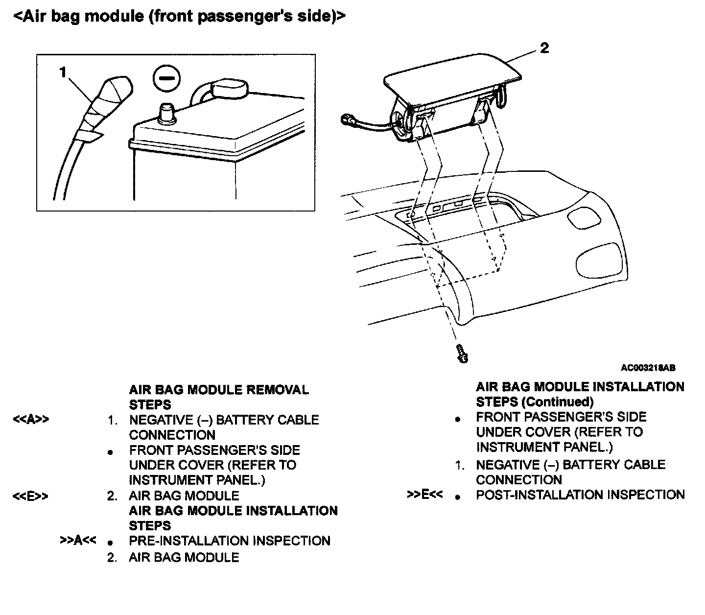 [[E]] AIR BAG MODULE REMOVAL (FRONT PASSENGER'S SIDE)