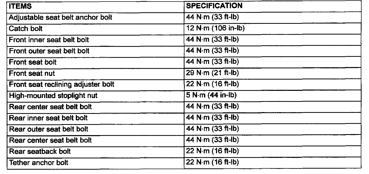 Fastener Tightening Specifications:
