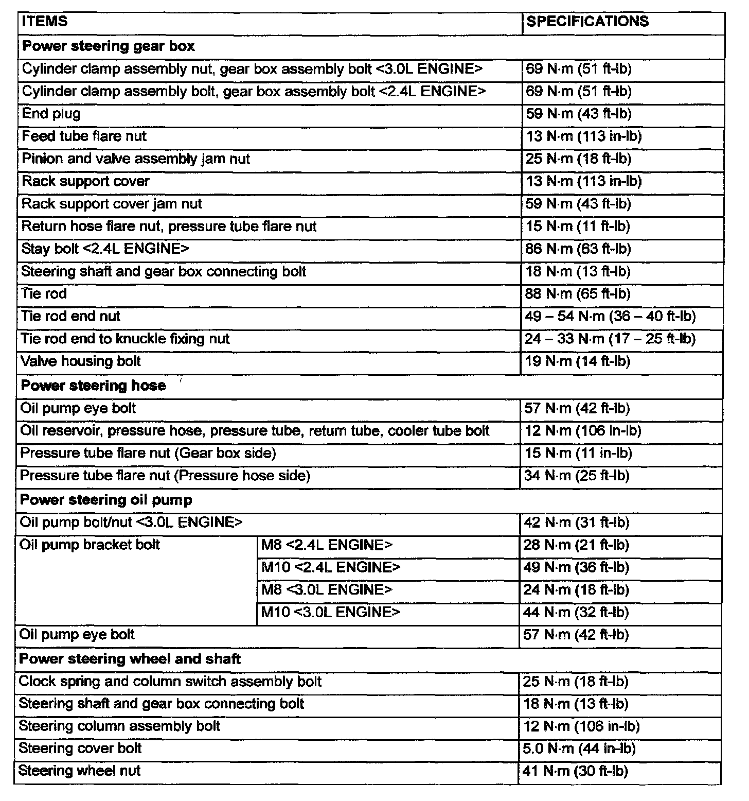 Power Steering Tightening Specifications