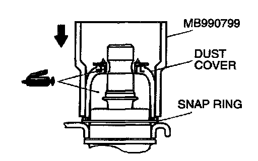 3. Using special tool MB990799, drive in the dust cover until it is fully seated.