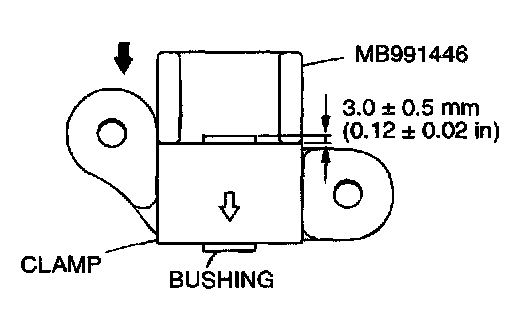 2. Use the special tool MB991446 to press in the bushing to the shown dimension.