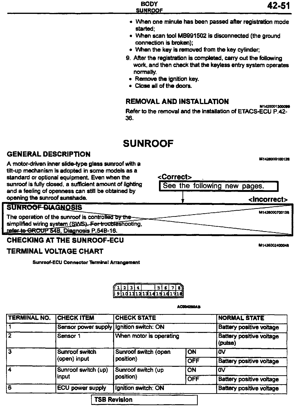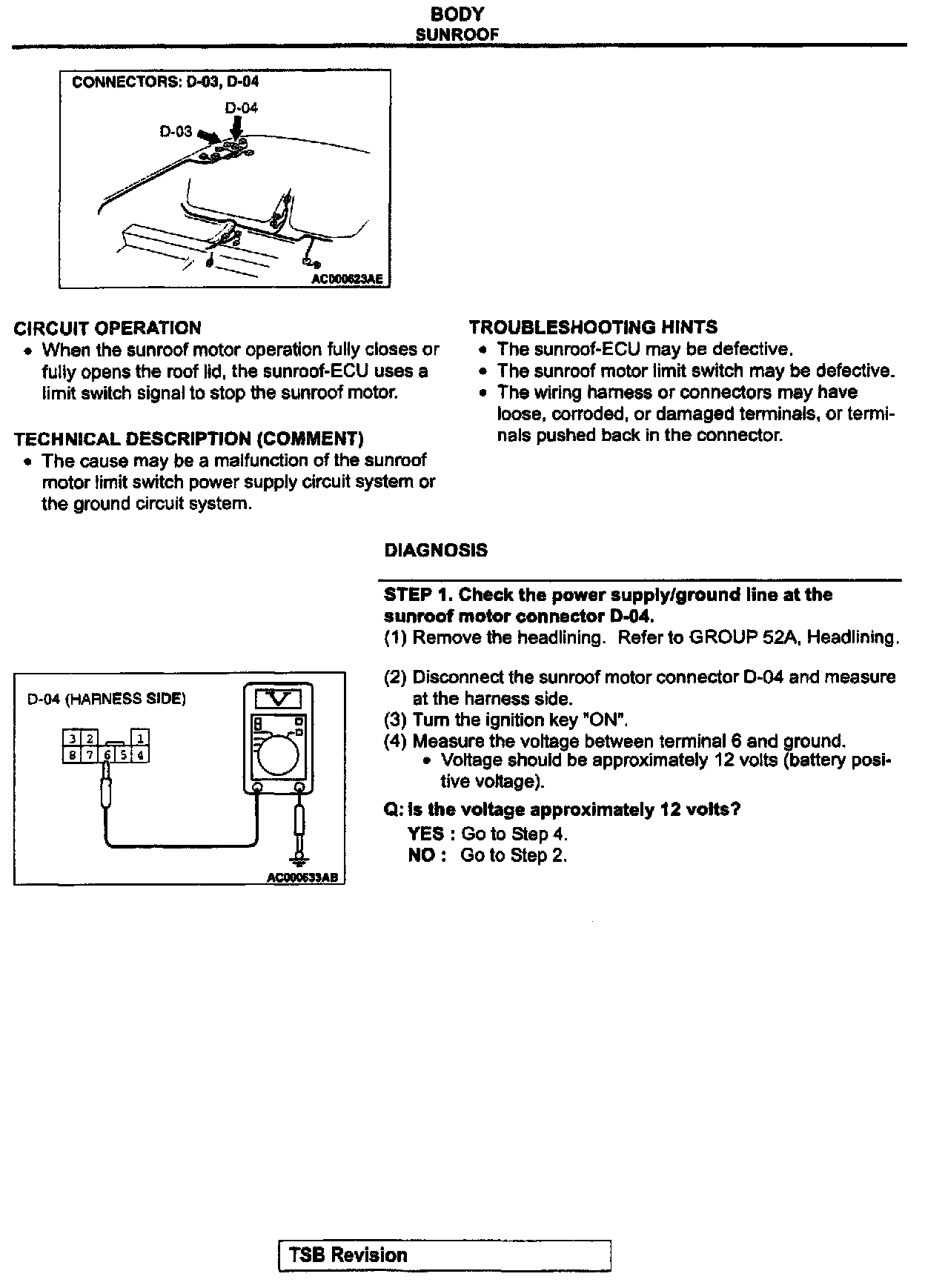 SUNROOF DIAGNOSIS - SERVICE MANUAL REVISION