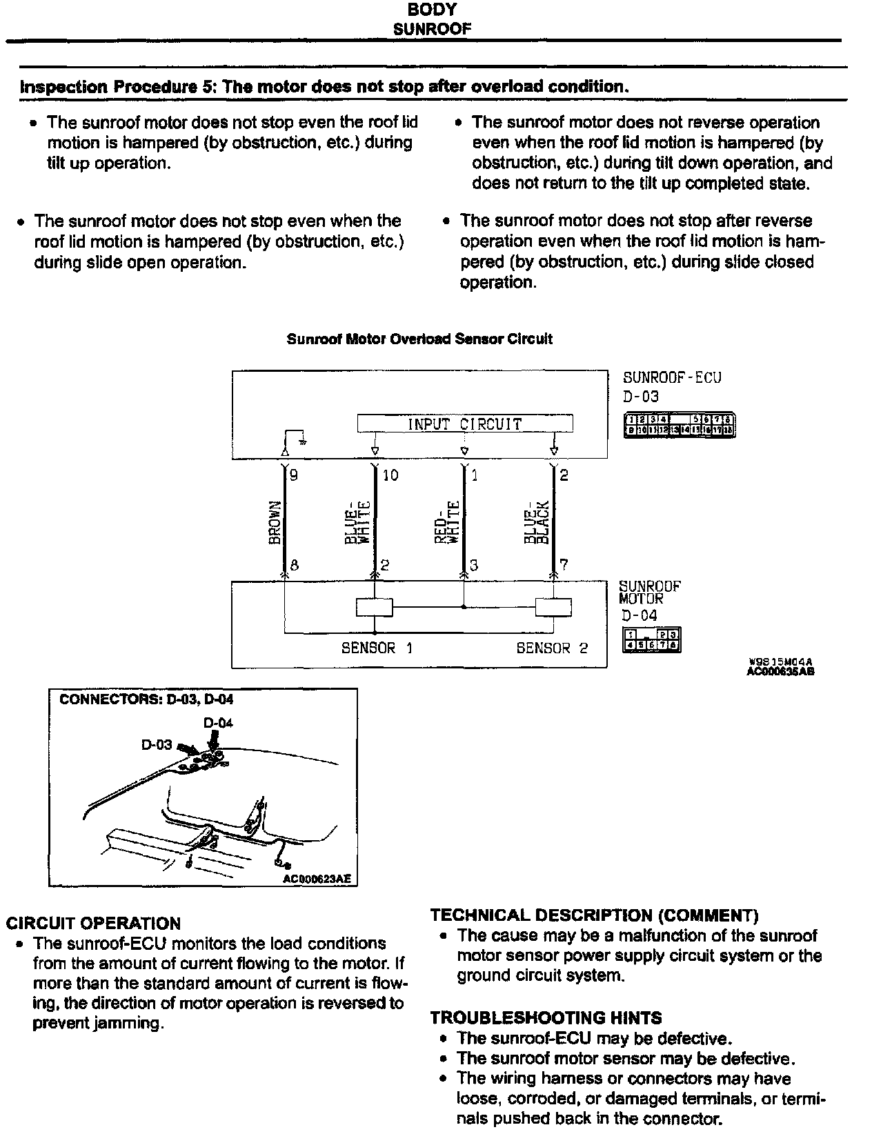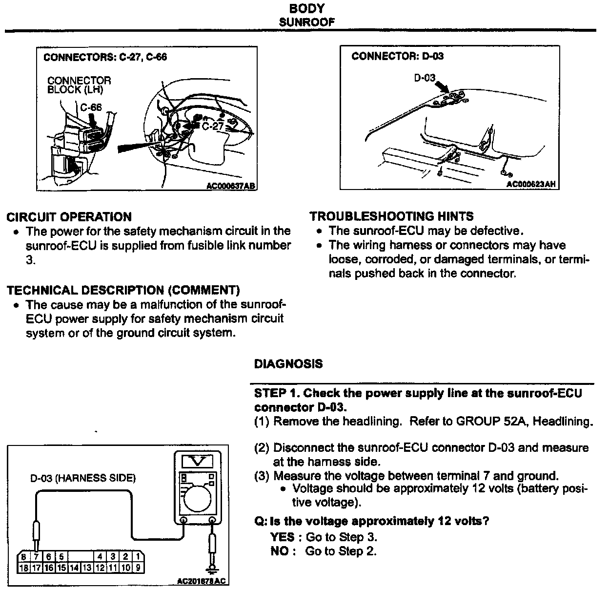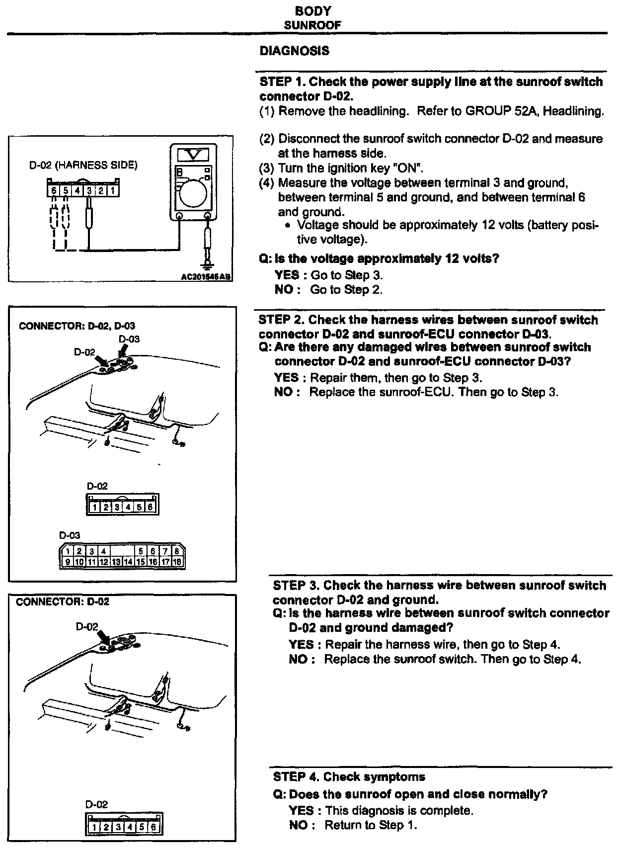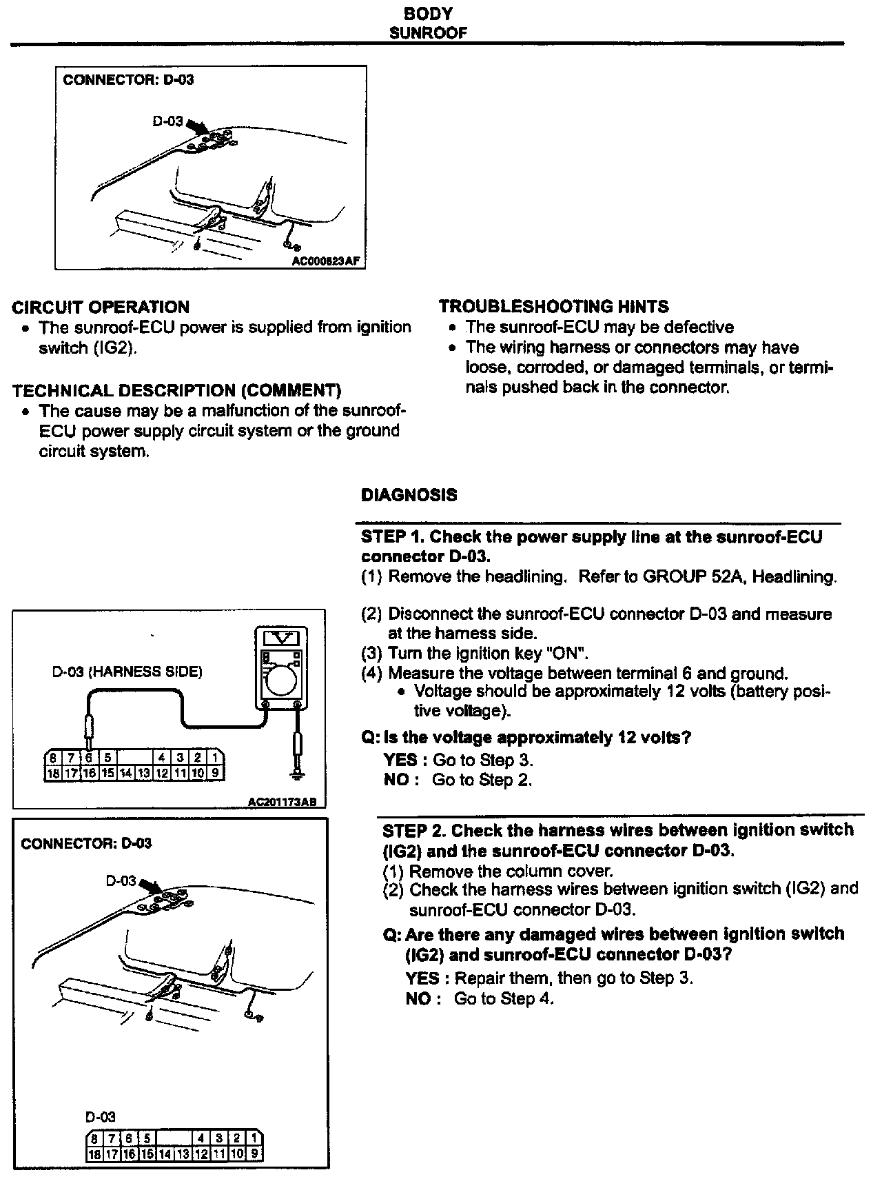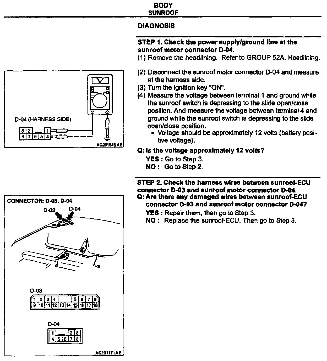 2002 Galant, Volume 3, page 42-51. Add the sunroof diagnosis procedures shown.