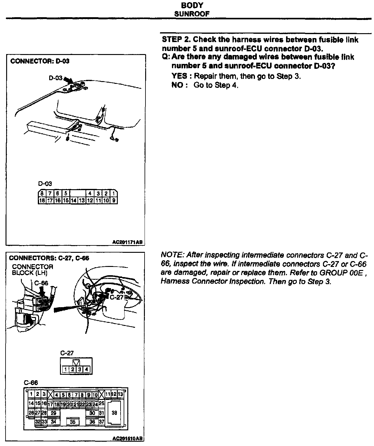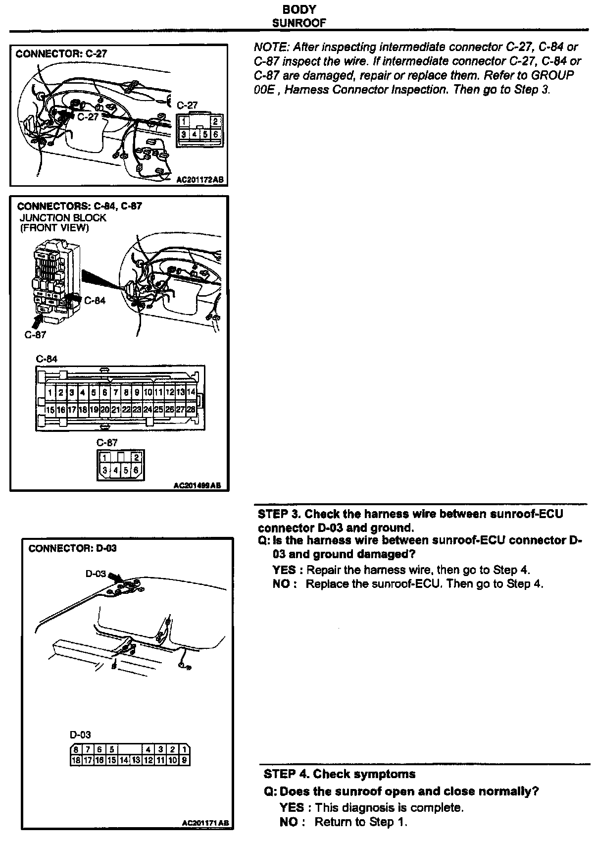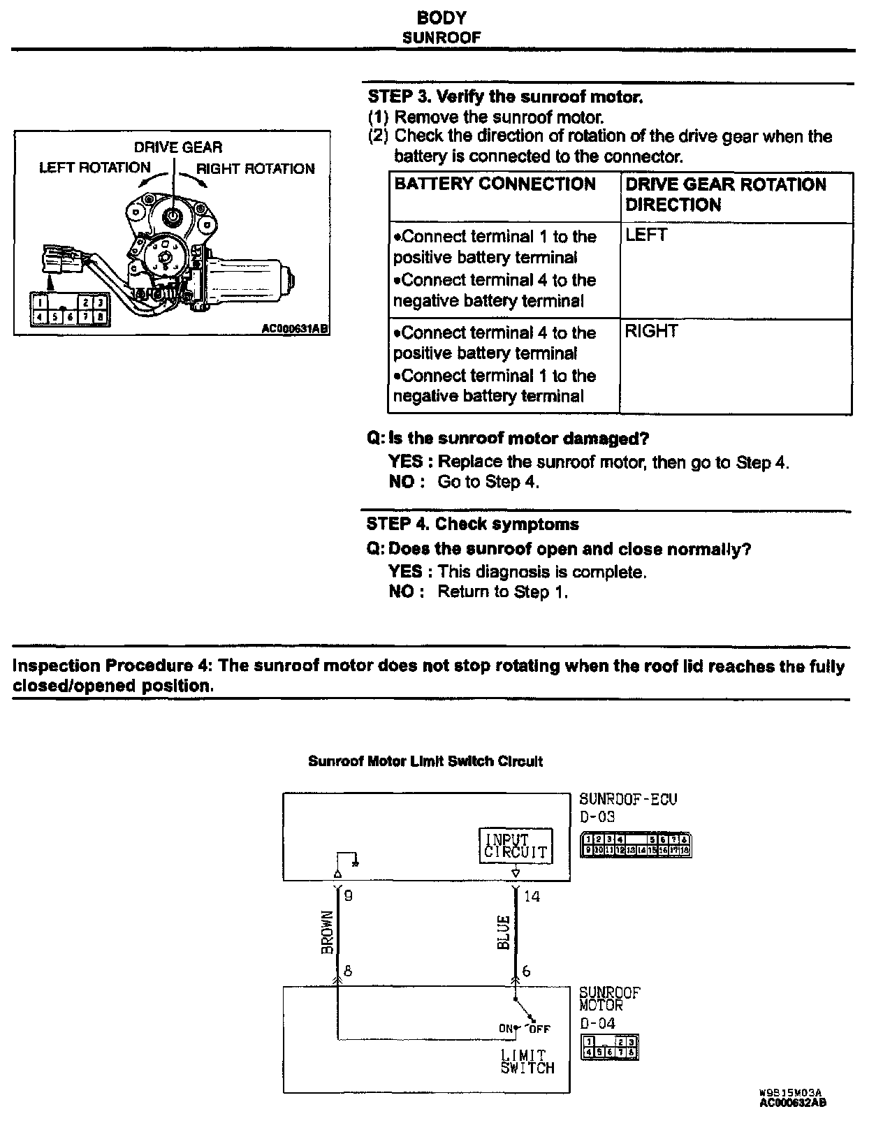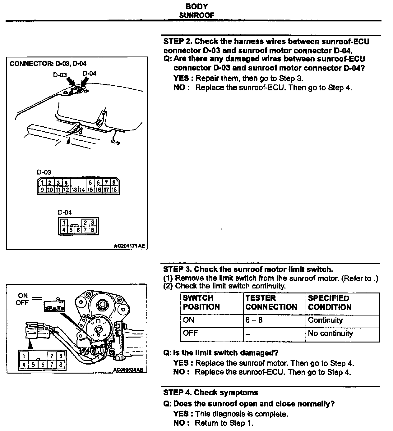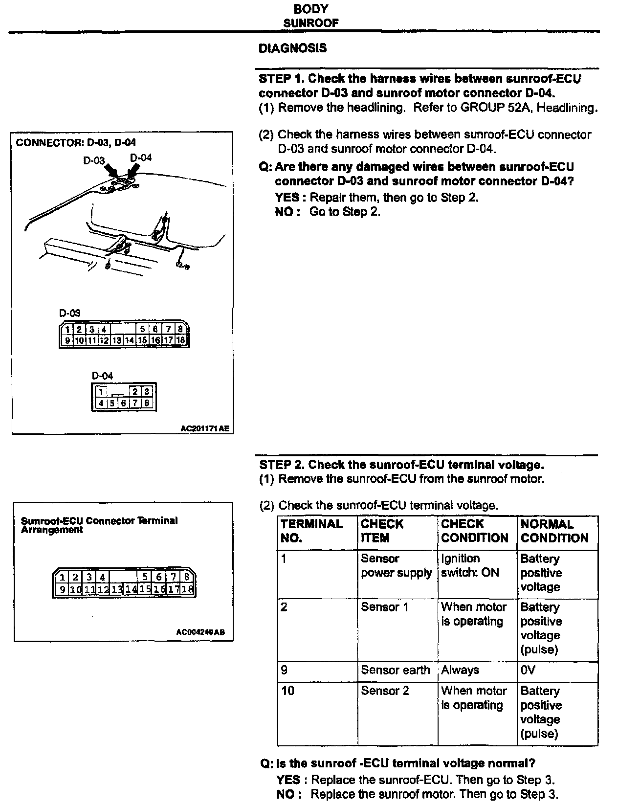 2002 Galant, Volume 3, page 42-51. Add the sunroof diagnosis procedures shown.