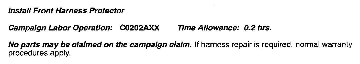 FRONT HARNESS SAFETY RECALL CAMPAIGN