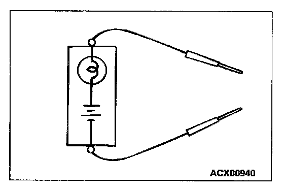 A test light consists of a 12 V bulb and lead wires. It is used to check voltages or short circuits.