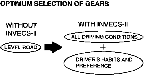^ INVECS-II features "Optimum Shift Control," which provides shift timing the average driver perceives to be the optimum timing under any road conditions. "Adaptive Shift Control" adjusts shift timing to match the driving habits and preferences of individual drivers.