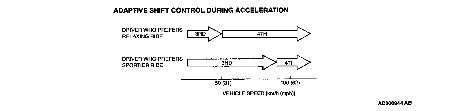 NOTE: Within 2 -to- 3 and 3 -to- 4 movement ranges, the PCM adjusts shift points according to the driving conditions by memorizing the accelerator pedal stroke and braking timing.