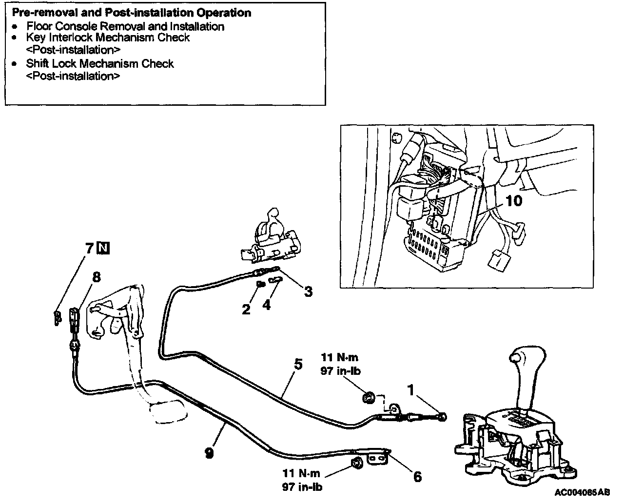 >>A<< SHIFT LOCK CABLE (SELECTOR LEVER SIDE) INSTALLATION
