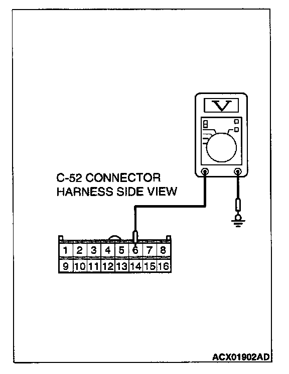 STEP 1. Check the output circuit voltage at auto-cruise control-ECU connector C-52 by backprobing.