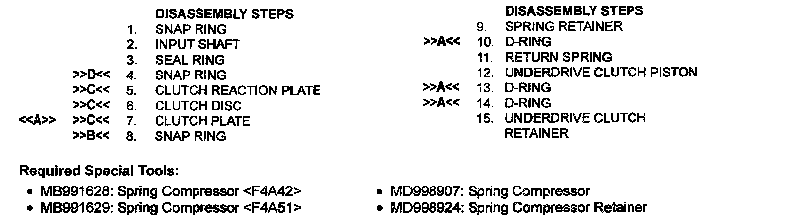 UNDERDRIVE CLUTCH AND INPUT SHAFT OVERHAUL W/ RELATED COMPONENTS