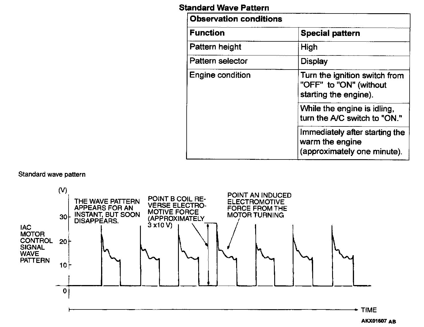 1. Check that the standard wave pattern appears when the idle air control motor is operating.