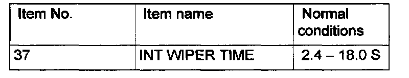 3. Select "WIPER - F. WIPER INT" (FUNCTION DIAG), and check that normal conditions are displayed on the items described in the table.