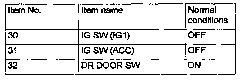 Select "ETACS ECU" (DATALIST), and check that normal conditions are displayed on the items described in the table.