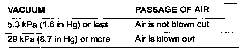 3. Apply 67 kPa (20 in Hg) of vacuum, and check to be sure that the vacuum is maintained.