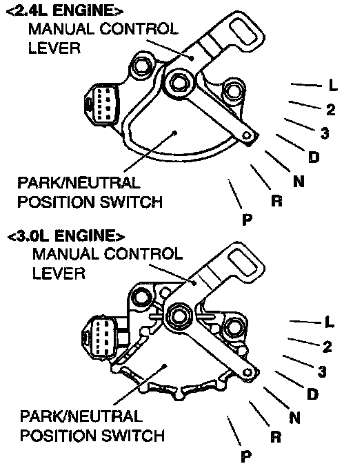 Move the selector lever to each position, and check if the manual control lever position of the Park/Neutral position switch corresponds to the selector lever position.