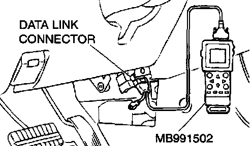 CAUTION: To prevent damage to scan tool MB991502, always turn the ignition switch to the "LOCK" (OFF) position before connecting or disconnecting scan tool MB991502.