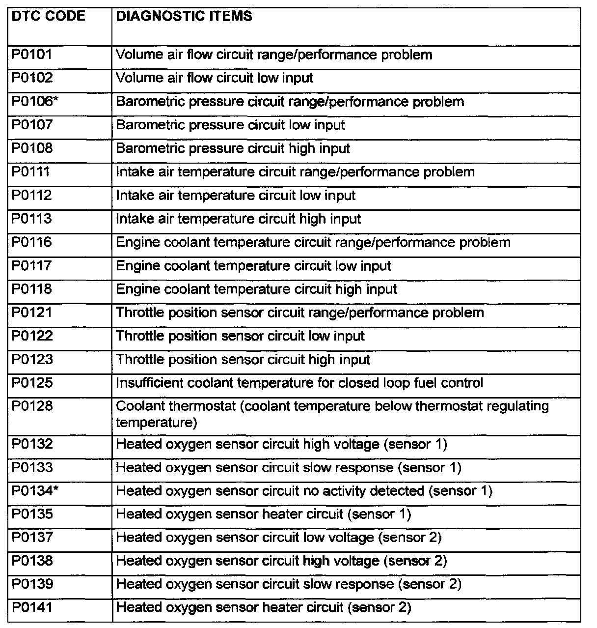 INSPECTION CHART FOR DIAGNOSTIC TROUBLE CODESP0101 - P0141: