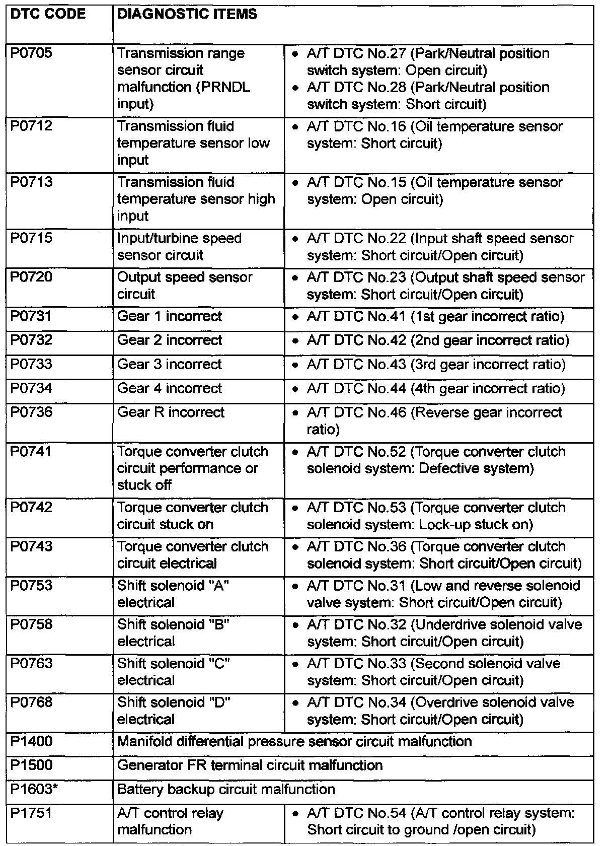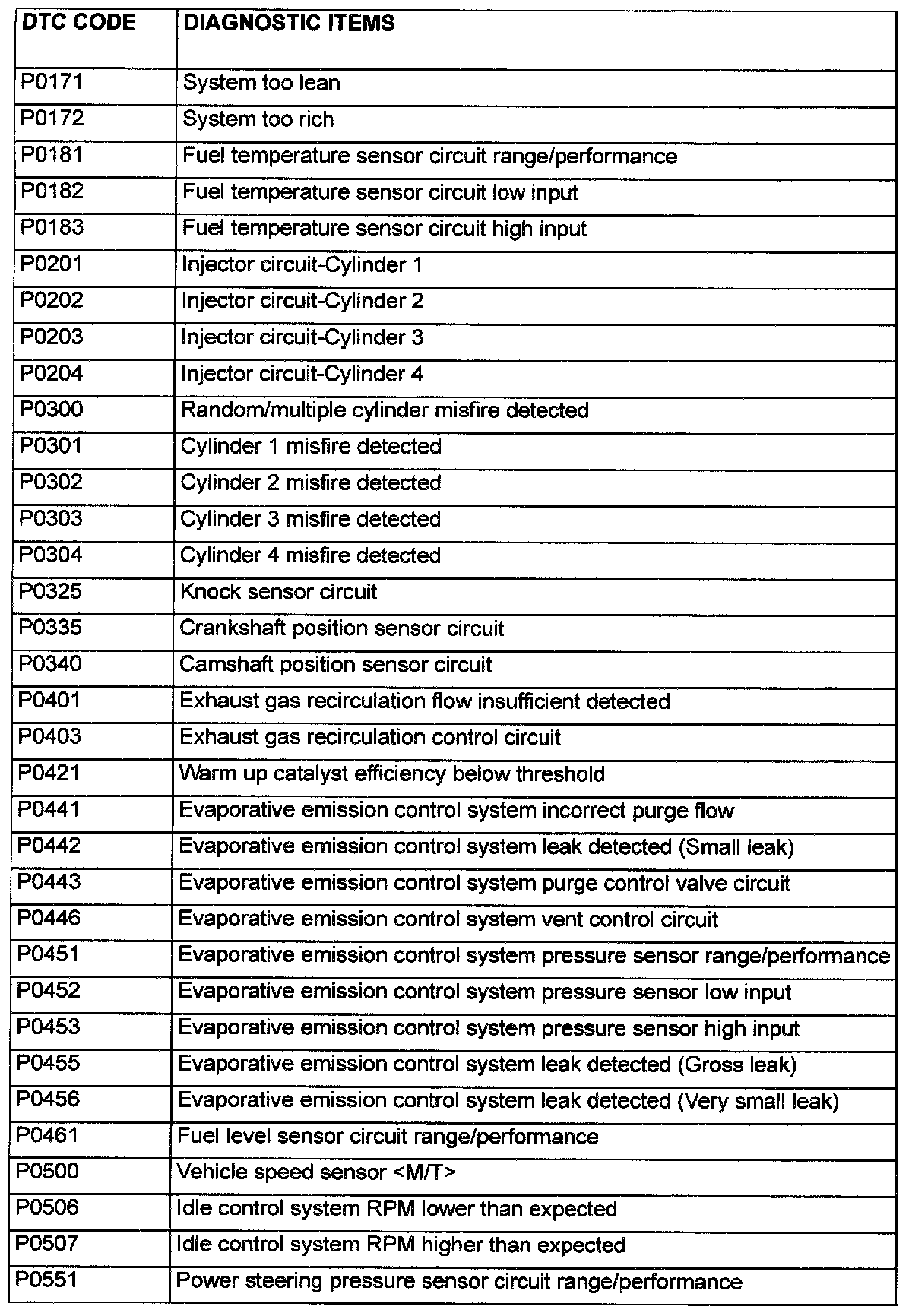 NOTE: After the ECM [M/T] or PCM [A/T] detects a malfunction, a diagnostic trouble code is recorded the next time the engine is started and the same malfunction is re-detected. However, for items marked with a "*," the diagnostic trouble code is recorded on the first detection of the malfunction.