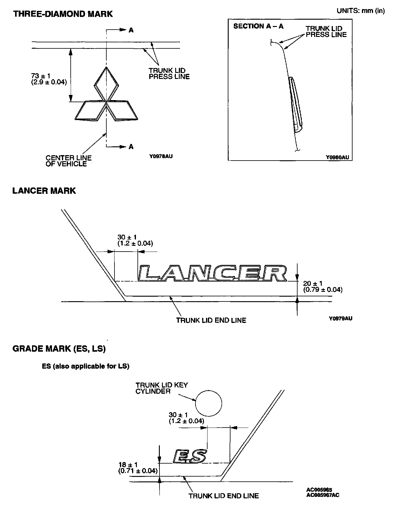 CAUTION: When attaching the marks, the ambient temperature should be 20° - 38°C (60° - 100°F) and the air should be completely free of dust If the ancient temperature is lower than 20°C (60°F), the marks and the places on the vehicle body where the marks are to be attached should be heated to 20° - 38°C (60° - 100°F).