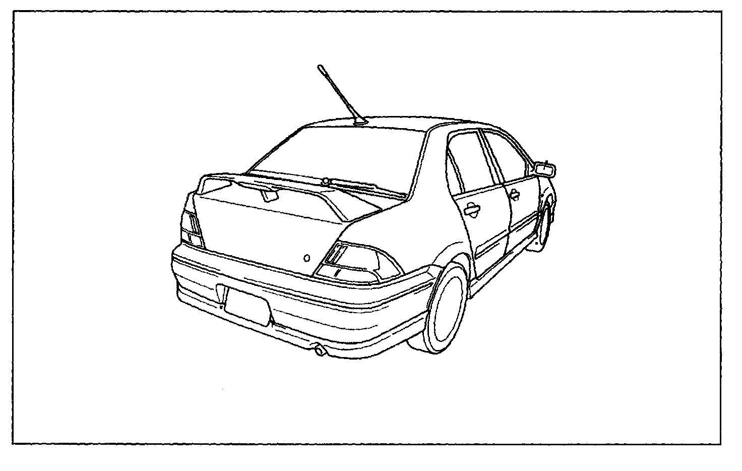 2002 Lancer Technical Information Manual, pages 00-3, 51-2, and 51-3. Replace the illustration of the vehicle with the following (rear spoiler is changed).