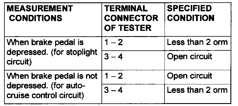 Brake Switch (Cruise Control): Testing and Inspection