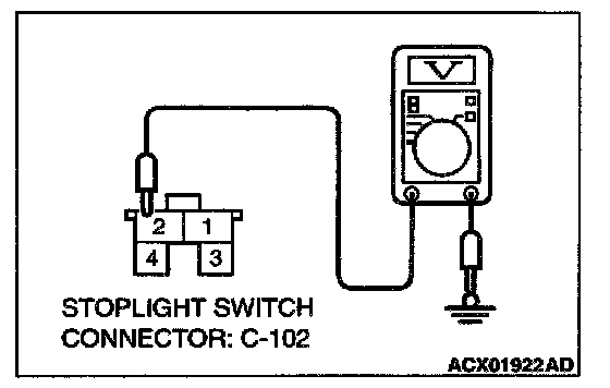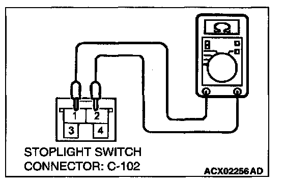 1. Disconnect stoplight switch connector C-102 and measure at the harness side.
