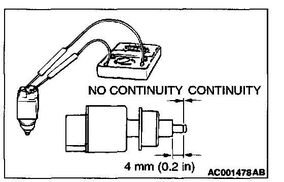 3. The stoplight switch is in good condition if the circuit is open when the plunger is pushed in to a depth of within 4 mm (0.2 inch) from the outer case edge surface, and if the resistance value is less than 2 ohm when it is released.