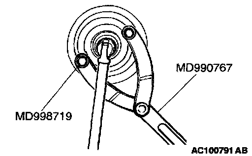 Use special tools MD998719 and MB990767 to remove the crankshaft pulley.