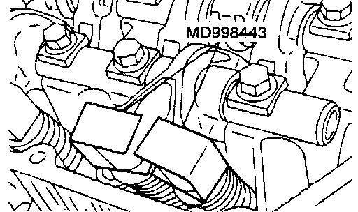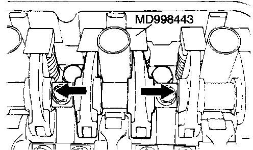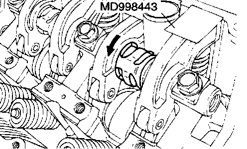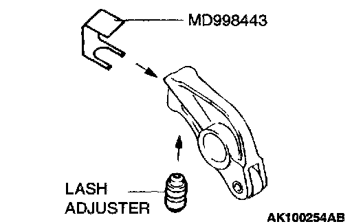 Set special tool MD998443 to prevent the lash adjuster coming free and falling to the floor.