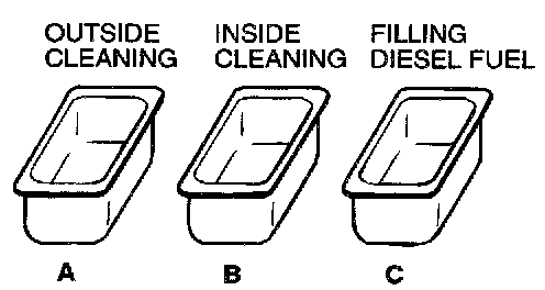 CAUTION: Do not use container C for cleaning. If cleaning is performed in container C, foreign matter could enter the pressure chamber when the chamber is filled with diesel fuel.