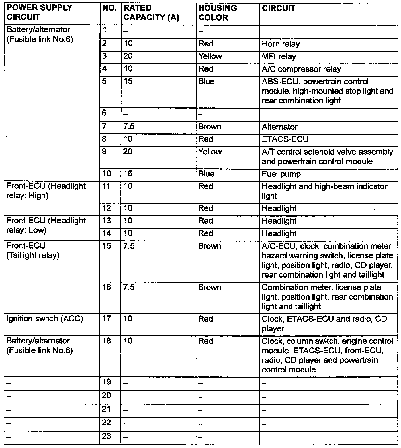 Dedicated Fuse 1 - 19 (Relay Box In Engine Compartment):