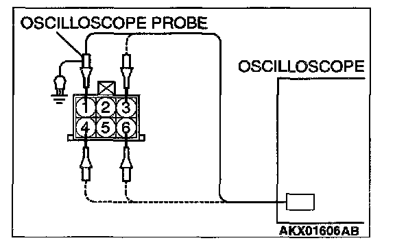 2. Connect the oscilloscope probe to the idle air control motor connector terminal 1, terminal 3, terminal 4 and terminal 6 respectively.