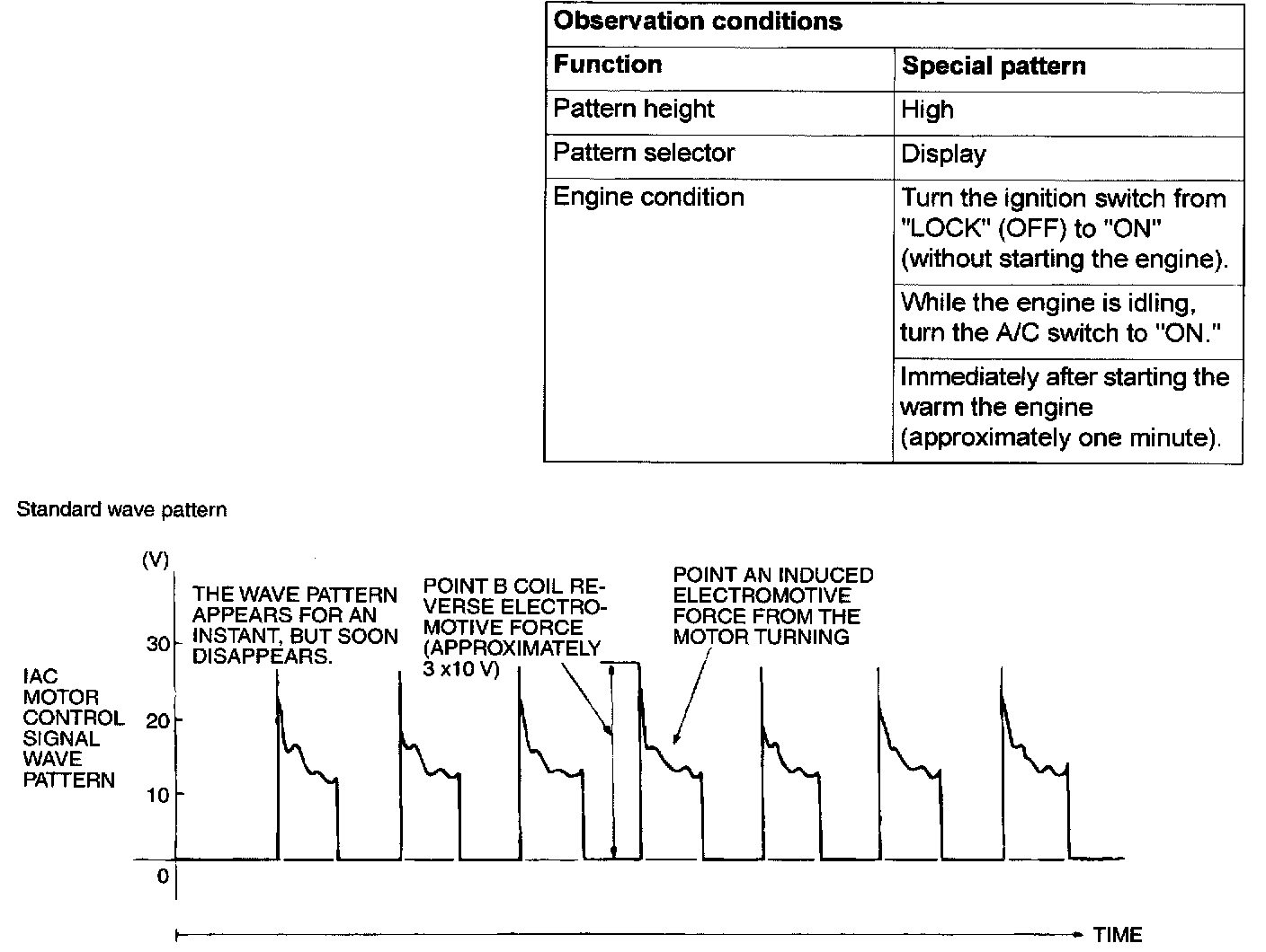 Check that the standard wave pattern appears when the idle air control motor is operating.