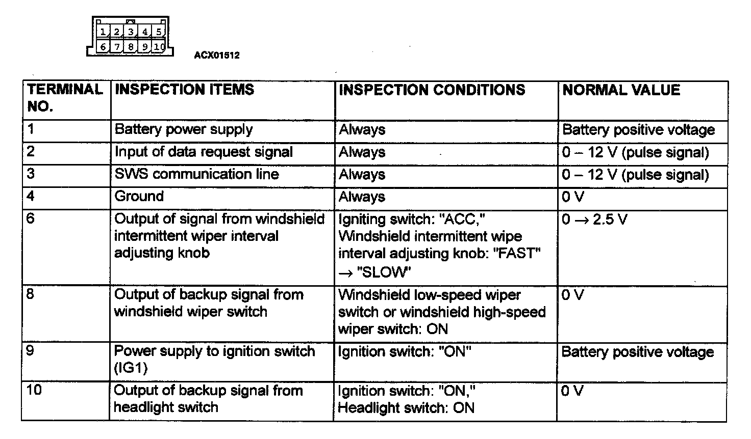 Column-Switch Terminal Arrangement And Terminal No: 1 - 10: