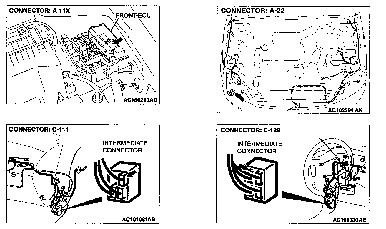 NOTE: Also check intermediate connectors C-129 and C-111. If intermediate connectors C-111 or C-129 is damaged, repair or replace the connector as described in Harness Connector Inspection.