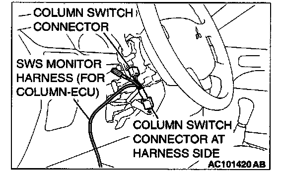 2. Connect SWS monitor kit MB991862 to the column switch connector.