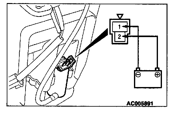 3. When battery voltage is applied between terminals 1 and 2, washer fluid should gush out.